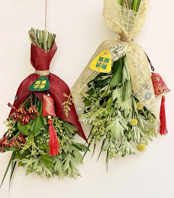 民諺說:“清明插柳,端午插艾”。端午是入夏后第一個(gè)節(jié)日氣溫上升,正是疾病多發(fā)期,人們往往會(huì)在家門口掛艾草、菖蒲,艾葉(也叫艾蒿)是一味芳香化濁的中藥,有較強(qiáng)的驅(qū)毒除瘟作用,菖蒲的葉片也含有揮發(fā)性芳香油,是提神通竅、健骨消滯、殺蟲滅菌的藥物。